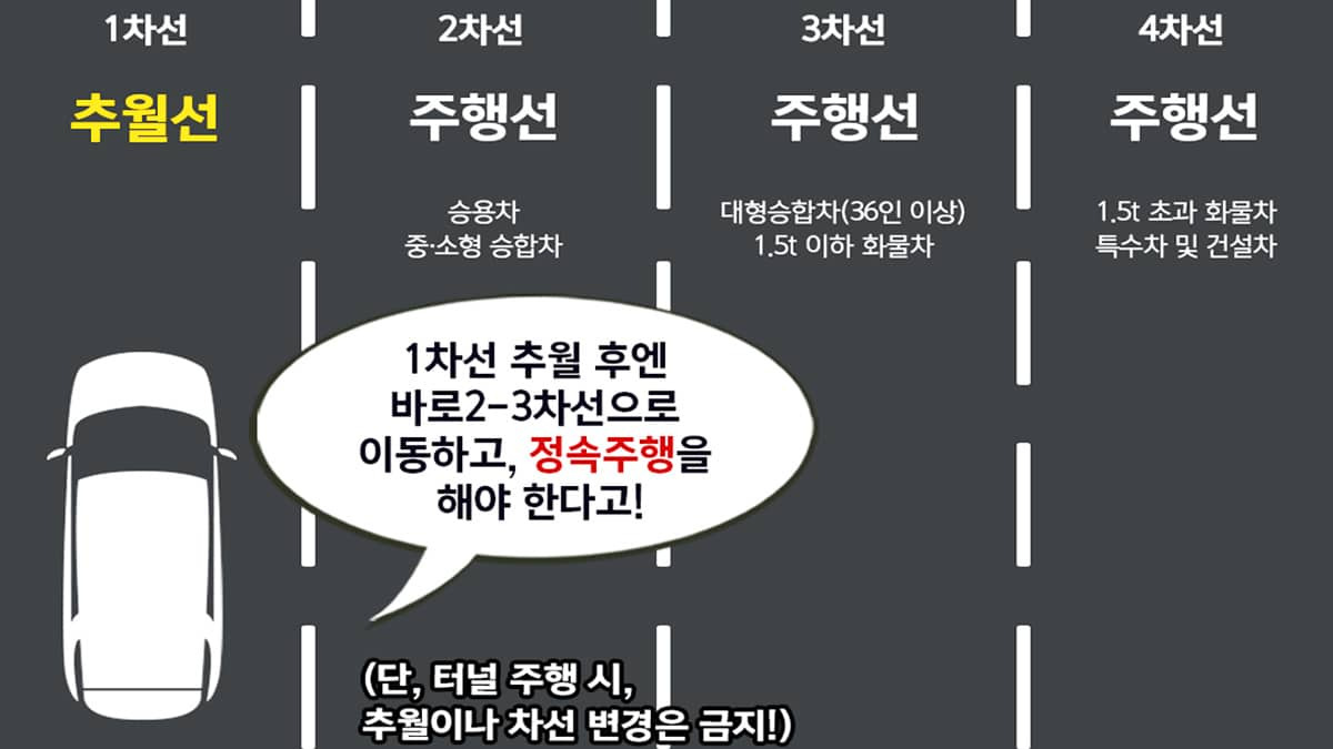 1차로는 ‘나를 위한 공간’이 아니라 ‘모두의 교통 흐름’을 위한 추월차로라는 사실을 이해해야 한다.