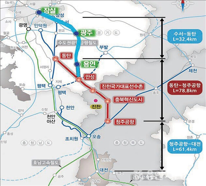 - 경강선 연장선은 용인 남사지역에서 수도권 내륙선(화성 동탄~청주공항)과 연계할 수 있습니다.