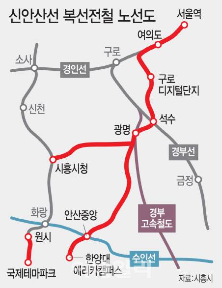 노선은 서울 여의도에서 안양 석수역을 거쳐 광명역에서 분기해 시흥시 청역 등을 지나 안산 국제테마파크로 가는 것과 광명역에서 시흥 목감역, 안산 중앙역, 한양대 에리카캠퍼스로 가는 노선으로 설계되었습니다.