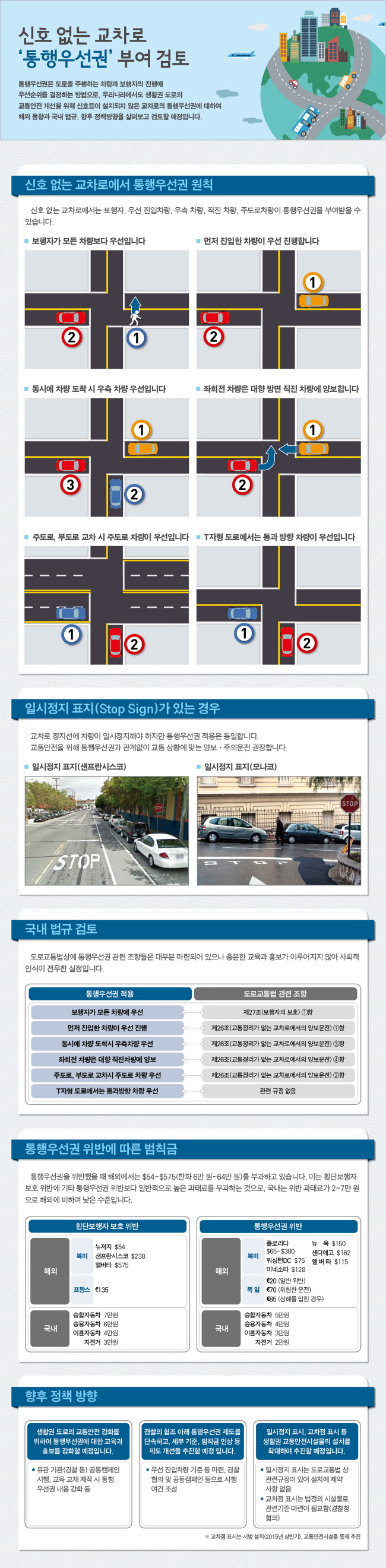 통행우선권을 위반했을 때 해외에서는 $54 ~ $575 (한화 6만원~64만원)를 부과하고 있습니다.