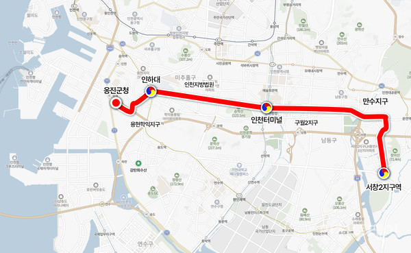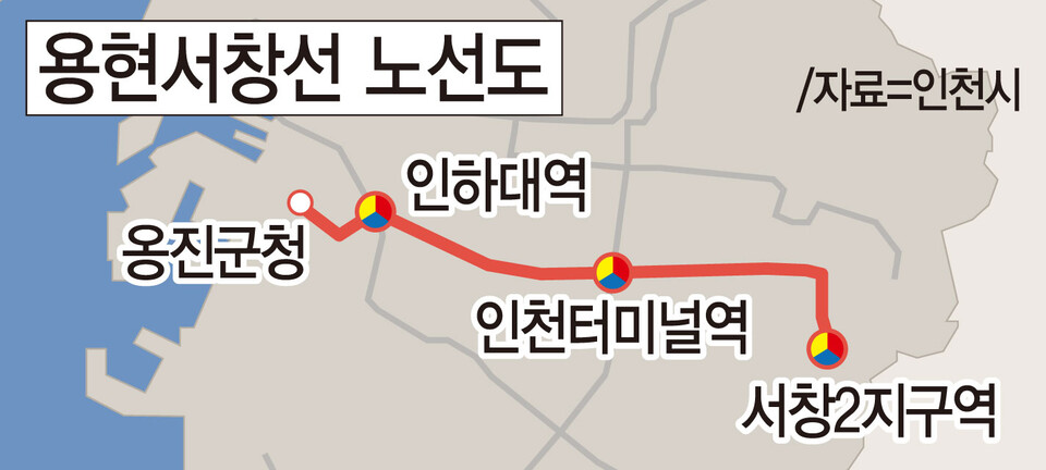 용현서창선은 옹진군청을 기점으로 인하대역·인천터미널역과 구월2지구를 경유해 서창2지구까지 연결하는 총 9개 정거장을 가진 노선으로 구상되고 있습니다.