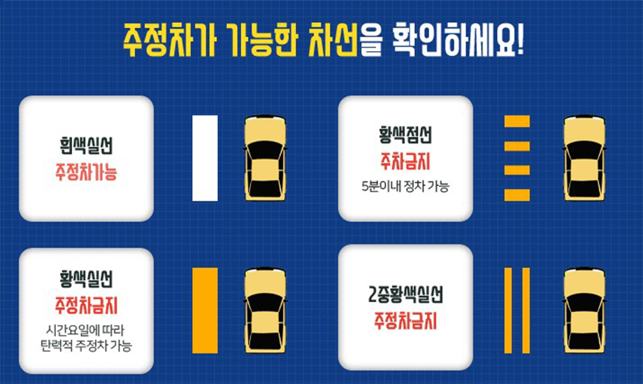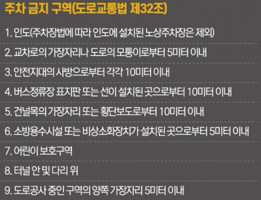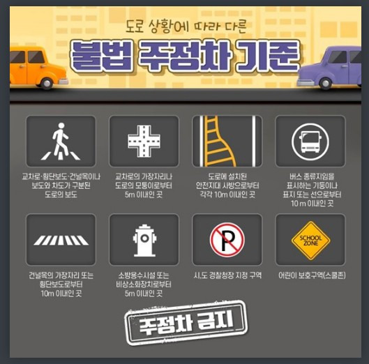 ※ 절대불가구역 : 인도위, 횡단보도, 교차로모퉁이, 소화전, 버스정류장, 어린이보호구역