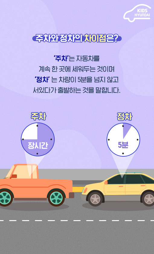 주차와 정차를 나누는 가장 큰 기준이 한곳에 차를 세워두는 시간이 5분을 넘느냐 아니냐인 것입니다.