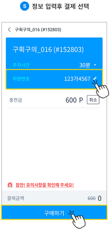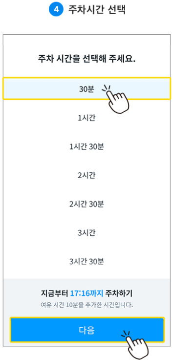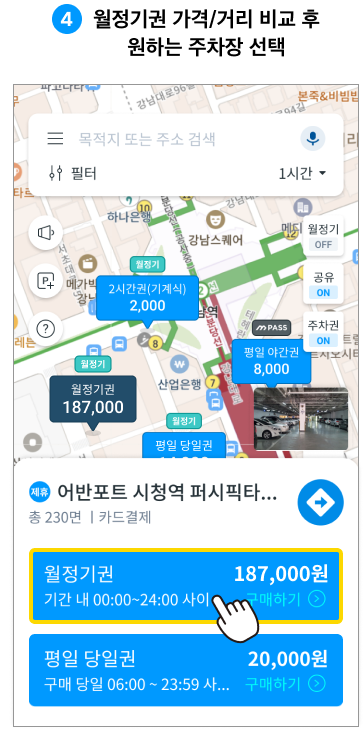 앱에서 주차권만 구매하면 직접 주차장에 방문하거나 등록하는 과정 없이 정해진 기간 동안 주차장을 자유롭게 이용할 수 있습니다.