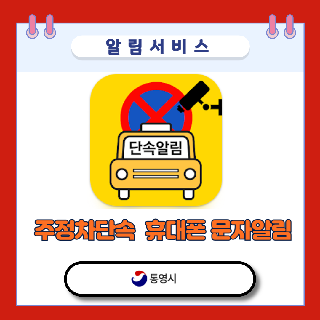 | 인터넷(시, 해당 군/구청 홈페이지) 및 서면신청 ▷ 인터넷 👉 인터넷 알림서비스 신청하러 가기 👈 ▷ 휴대폰 👉 스마트폰 앱 다운로드 및 알림서비스 신청 👈 ▷ 서면신청 : 통영시청 교통관리과, 각 군/구청 교통과 인근 동 주민센터 ☞ 인터넷으로 신청하시는 경우에는 서비스가 즉시 제공되며 서면신청 할 때는 접수 7일 후 부터 문자알림 서비스가 제공될 수 있습니다. ▷ 문의 : 통영시청 교통정책과 (☎ 055-650-5321~6) |