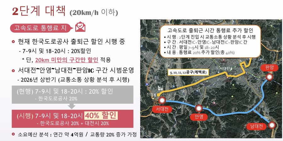 아울러 △고속도로 통행료 지원 △교통량 감축 정책 △시내버스 노선 개편 등을 통해 장기적인 차량 흐름 개선을 목표로 하고 있다.