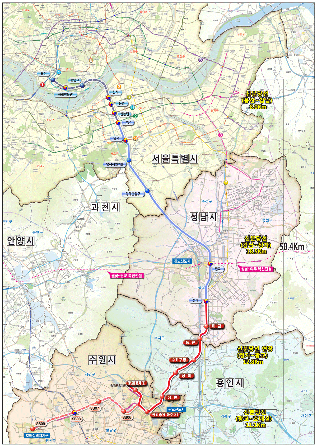 2) 신분당선 전체 연장 노선도 (지도 기반)