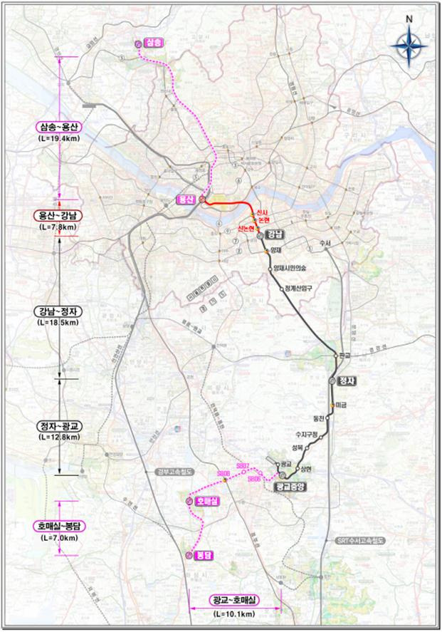3) 신분당선 전체 연장 노선도 (지역 표기)