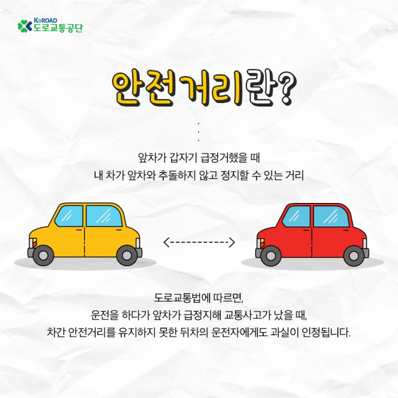 도로교통법 제19조에 따르면, 모든 차량은 앞차와의 충돌을 피할 수 있을 정도의 안전거리를 유지해야 한다고 명시돼 있다.