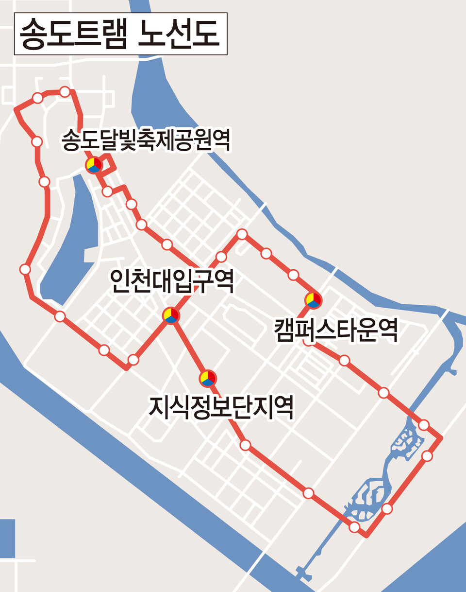 이 송도트램은 인천1호선이 지나지 않는 송도 6·8공구, 인천대, 삼성바이오로직스, 연세대 국제캠퍼스 등 송도국제도시 내부를 순환