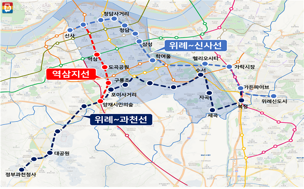 위례과천선 강남구 방면 예상 노선도