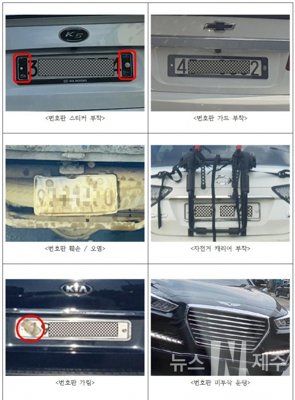 번호판 가림의 주요 위반 사례;